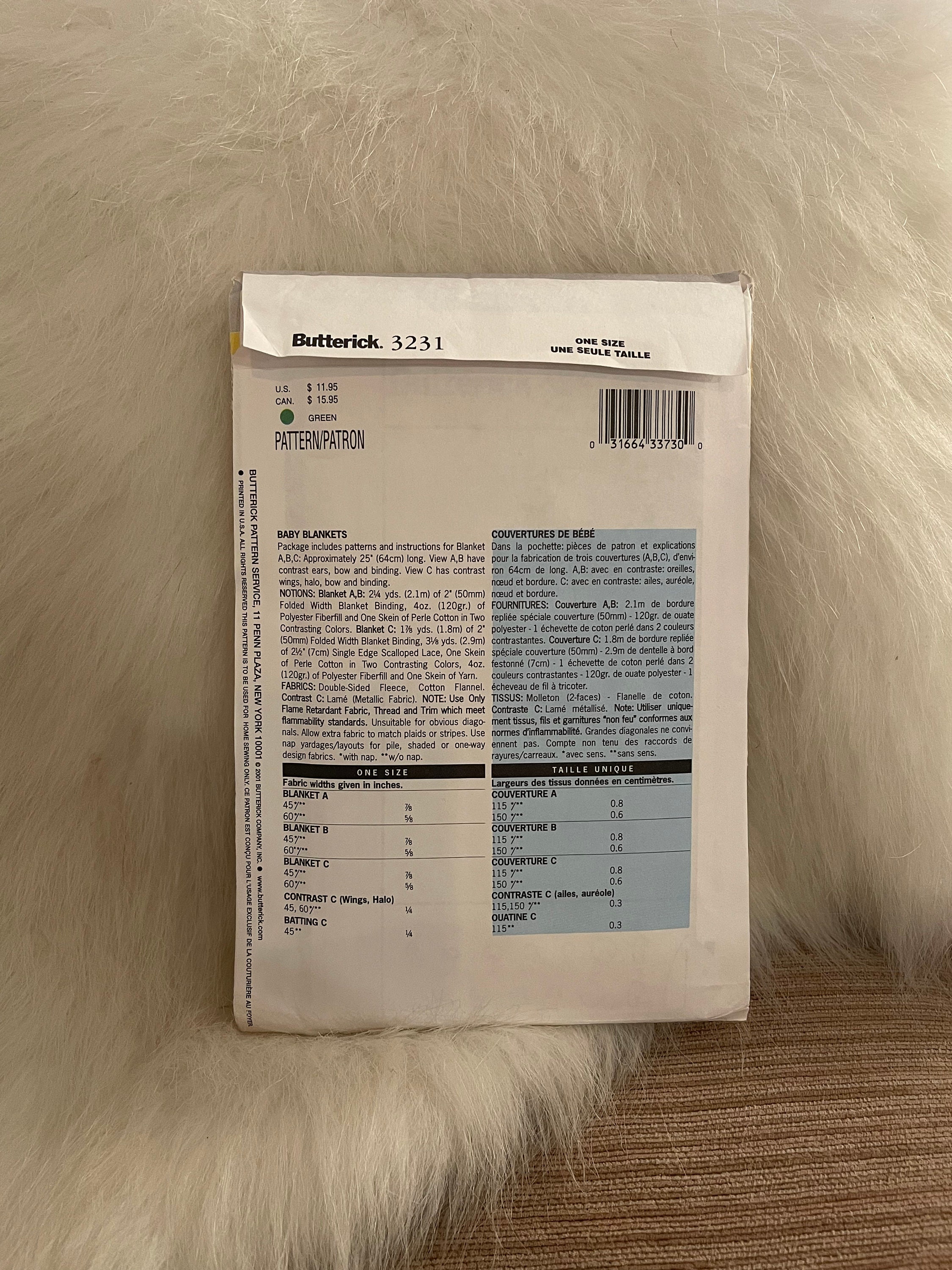 Butterick Pattern 3231 Baby Blanket Pattern2001 Etsy